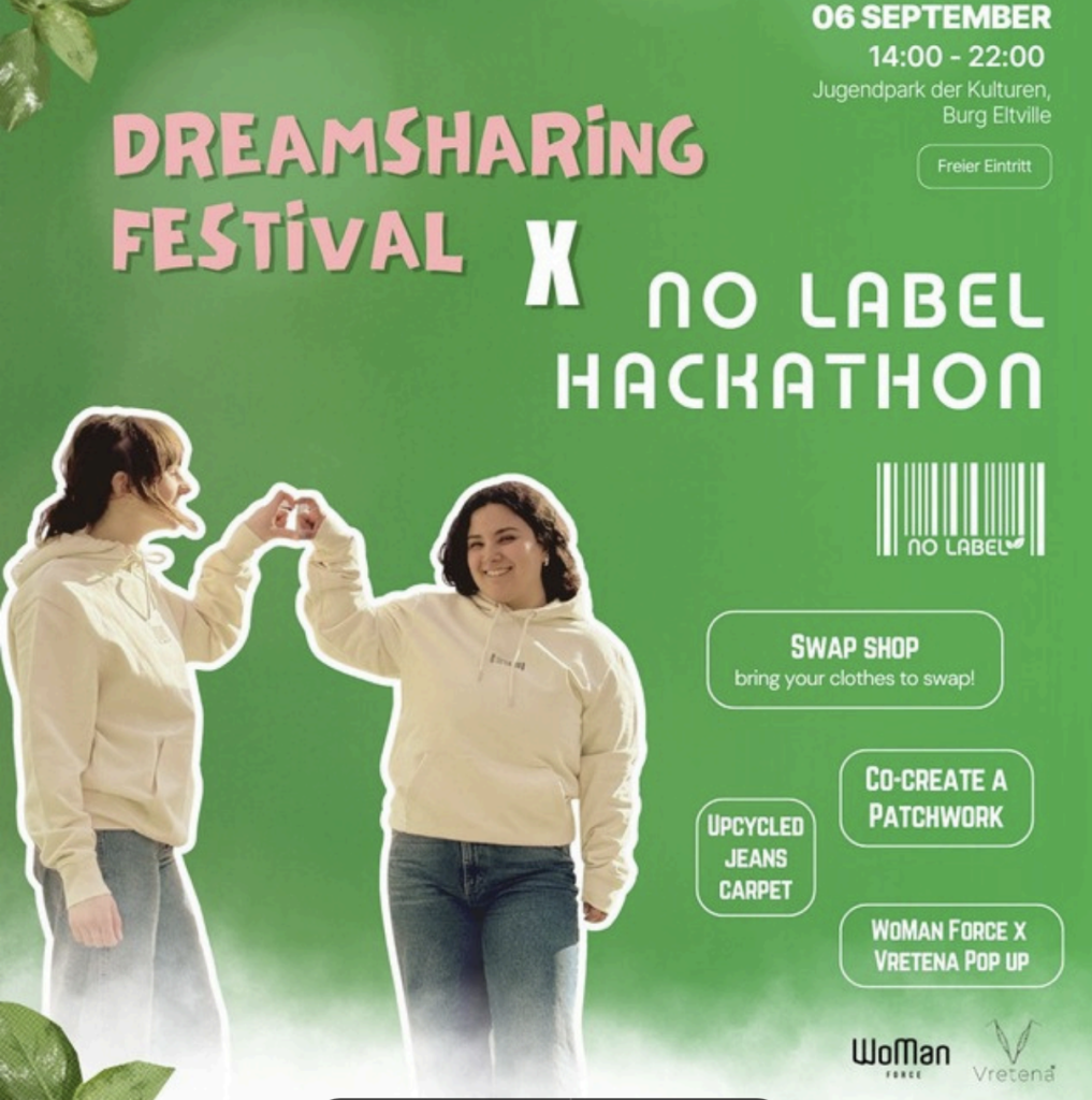 Held on 6 September 2025, the Dreamsharing Festival reached approximately 180 young people and youth workers. The visible presence of the No Label Project, including an information stand and banner, helped communicate its values and objectives to a broad audience, while the continued exhibition of the upcycled Jeanscarpet demonstrated tangible, long-term impact and the power of collaborative, youth-led action for sustainable fashion.